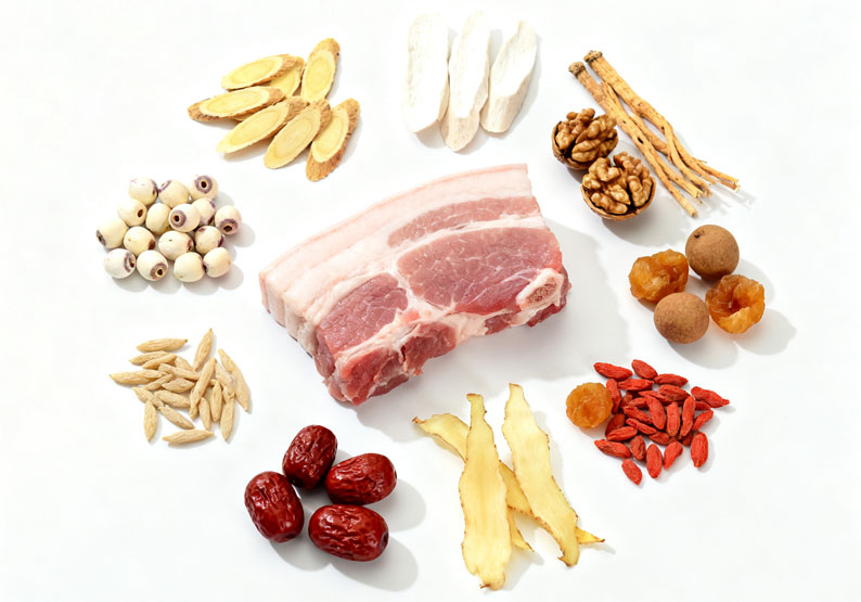 猪肉 400克(可选鸡肉) 、 黄芪 15克、党参 15克 、 淮山 20克 、 莲子 15克 、 核桃仁 20克 、 麦冬 10克 、