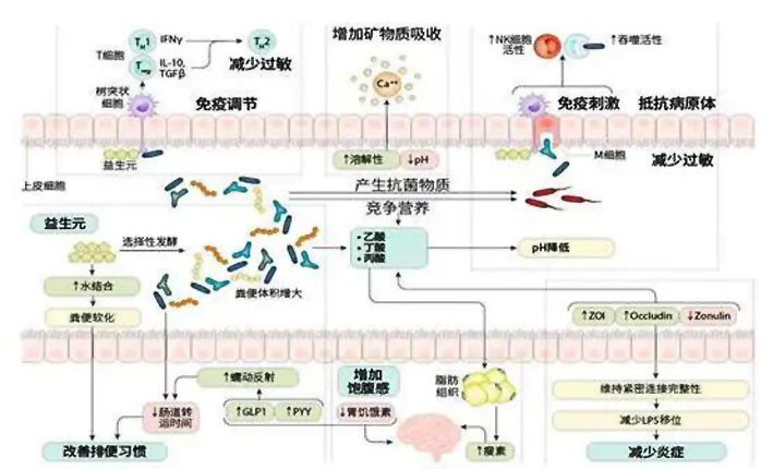 菌在肠道内持续高效发挥作用,形成 “补充 - 增殖 - 增效” 的闭环。这种 “益生