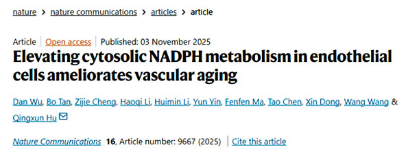 vascular aging”的研究论文。该研究系统阐明了内皮细胞中NADPH代谢在血管