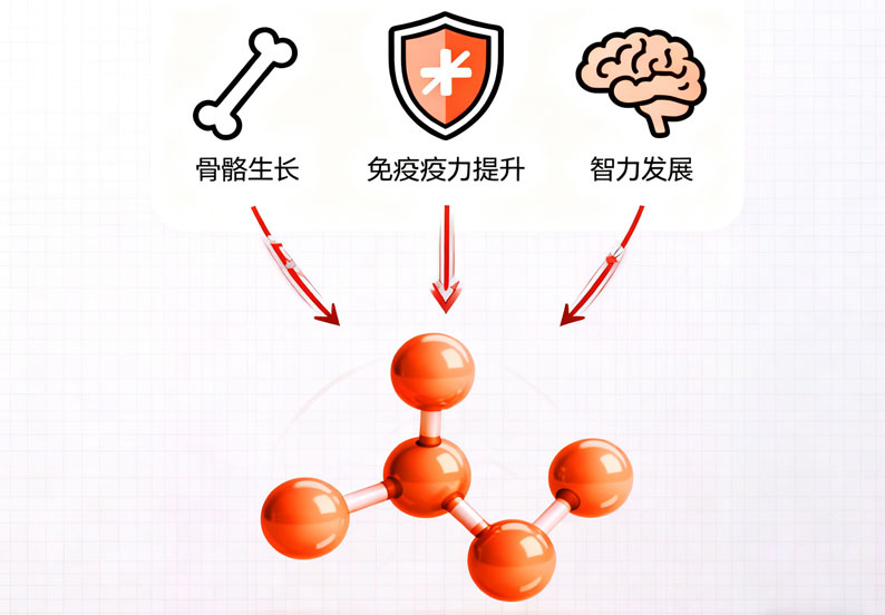锌作为“生长引擎”,在细胞层面推动整个身体的发育进程。它与高效的钙吸收系统协同,确保孩